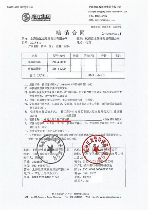 嘉興臺昇國際廣場彈簧減震器合同