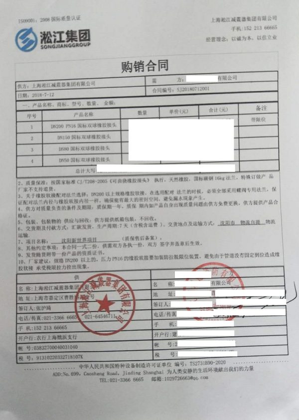 上海淞江減震器集團有限公司網站為您介紹:沈陽新世界中心雙球橡膠膨脹節合同信息,淞江集團為眾多大型建筑樓群提供管道減震器產品,以下是為沈陽新世界中心泵房水泵提供雙球橡膠接頭產品介紹。