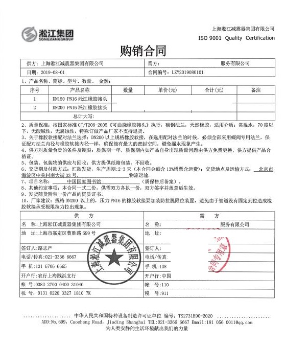 國家圖書館橡膠彈性接頭合同項目